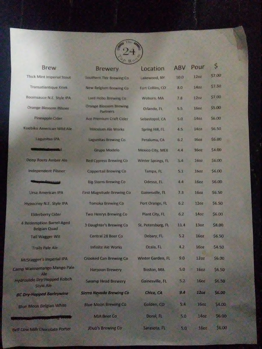 Welcome to The 24 Tap Room, a hidden gem nestled in Leesburg, FL. This vibrant establishment boasts an extensive selection of craft beers, featuring unique flavors that keep local patrons returning for more. With 24 taps of carefully curated brews, each sip invites adventure and discovery.